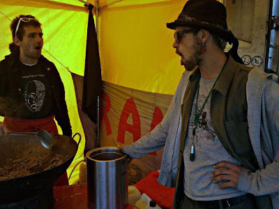 Zaterdag was er op het terrein een politiek-culturele manifestatie genaamd Damoclash, met, tussen muziek, biologisch voedsel en hoela hoeps, een debat over stadsontwikkeling met politici en idealisten. Adri van den Dries (PvdA Oost), Tamira Combrink (Groenlinks), Hein de Haan (stedebouwkundige), Imre Doff (Huurdersvereniging Oost) en Jaap Draaisma (Urban Resort) kruisten er de degens. Uwe Ouwe Zeikwijf was op deze manifestatie, maar ze miste helaas nipt het debat. Wat ze wel zag is een meute vrolijke jonge mensen: iedereen lachte van oor tot oor. Zoveel gemoedelijkheid en lieftalligheid kan ze zich niet herinneren ooit bij de krakersscene van weleer te hebben waargenomen. Wat een schatjes. Ze verdienen dubbel en dwars de troetelnaam 'de knuffelkrakers uit Oost', die AT5 ze ooit gaf.